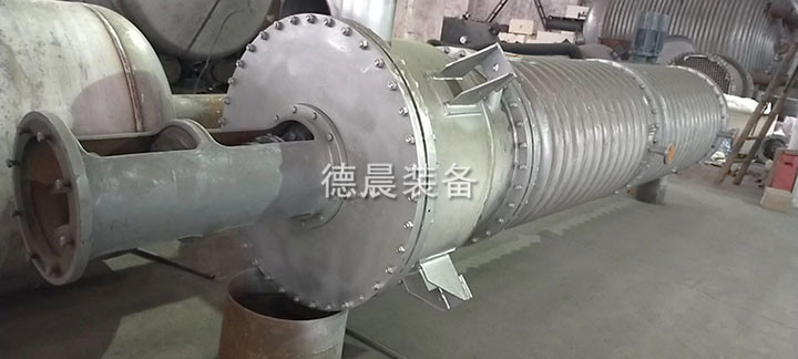 刮板式薄膜蒸發(fā)器中加熱器的排水管道與分離設(shè)備的冷卻器腔室聯(lián)接,使凝結(jié)水從底端排出來,不但減少了蒸汽的損害,并且解決了排水管道設(shè)備的噪聲和環(huán)境污染。聯(lián)接管前面清理人孔,有利于清理加熱器下角殘余。